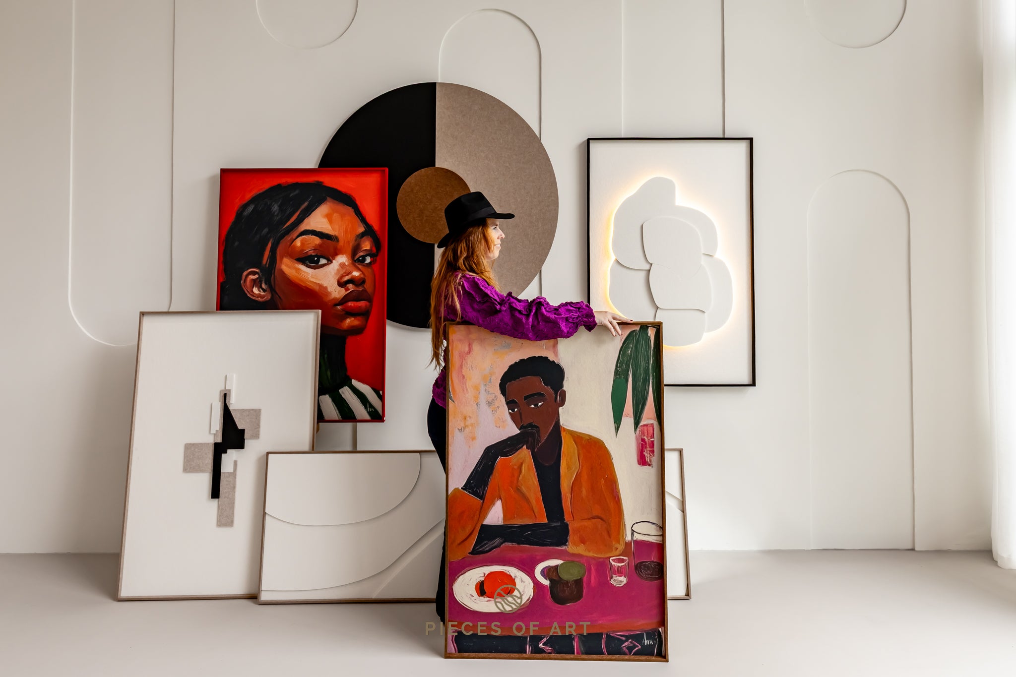 The best place for your acoustic art is where the sound bounces the most. Think of the empty wall opposite your couch or above your dining table.